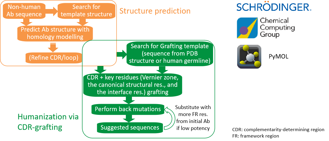 计算生物学技术主要为生物大分子药物设计,如多肽、蛋白药物、核酸药物和抗体,提供计算指导和帮助。以结构为基础,计算工具可以为大分子与靶标之间的结合进行预测,并帮助设计改造大分子药物。针对抗体药物,计算工具可以服务于抗体人源化、亲和力成熟、性质预测等,大大降低传统实验室中抗体设计的成本并缩短研发时间。