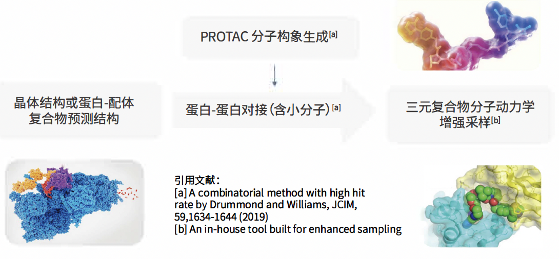 针对target-PROTAC-ligase ternary complex的构象分析,瑞辕可以采用不同的策略,例如采用先研究target-PROTAC,再研究target-PROTAC-ligase的策略,或者直接研究target-PROTAC-ligase。