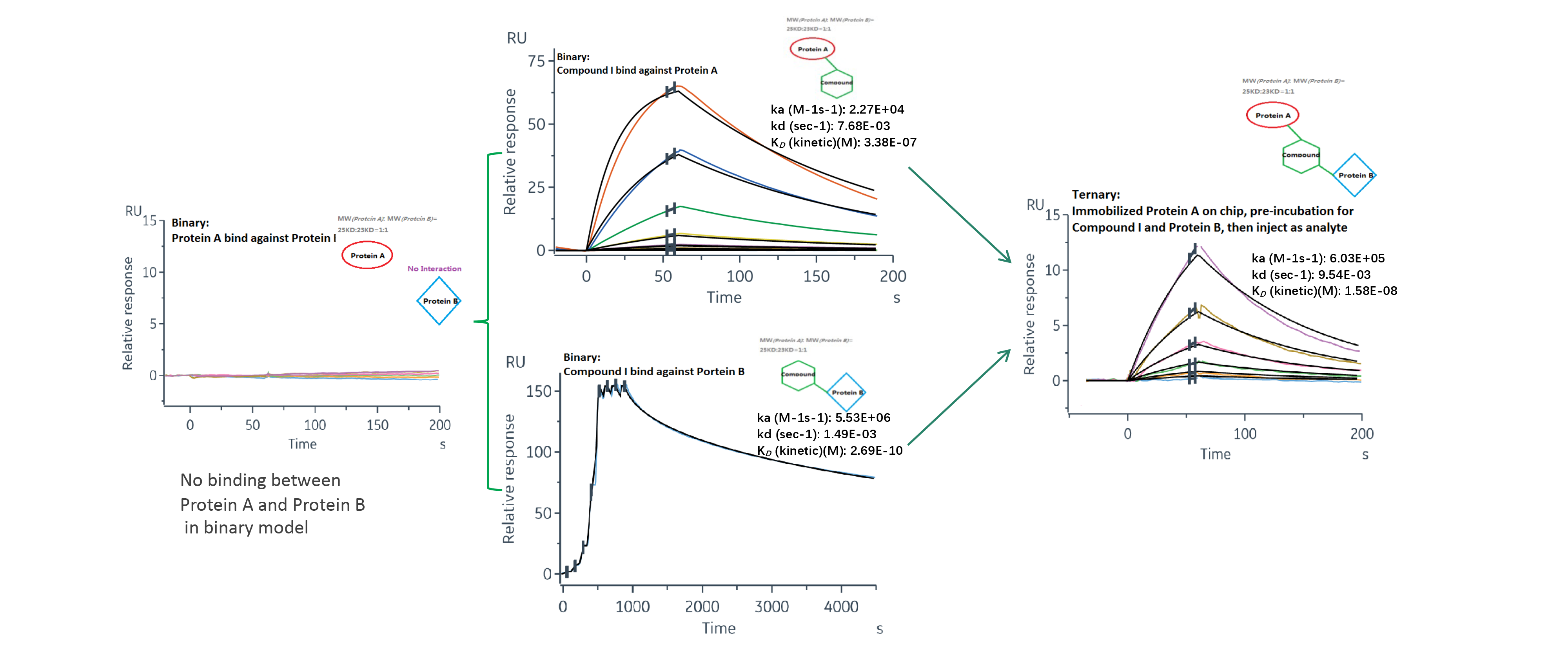 Proteins will be linked by compound which could binding to both protein A and protein B by A-B-A model